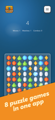 Match3Now is a relaxing collection of 8 match-3 puzzle games designed for casual play. Swipe, match, and clear tiles across colorful boards. Switch modes anytime. Play for one minute or longer sessions. No pressure. Just puzzles that feel good.